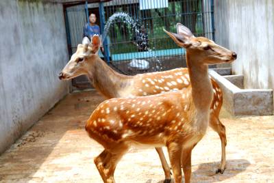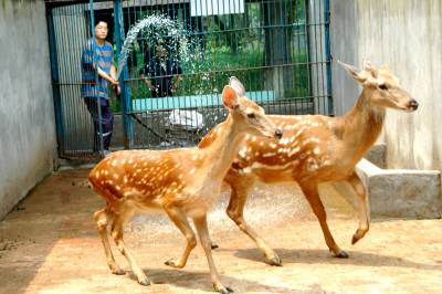 据动物园饲养员吴建东介绍:连日持续高温,动物园的内,海马住进空调房,老虎的房间装上抽风机,山羊梅花鹿则享受着淋浴。