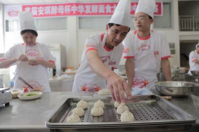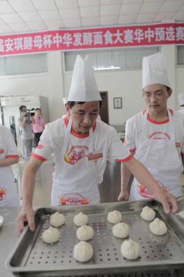 面点师大比拼6月21日,首届中华发酵面食大赛(华中赛区)比赛在宜昌安琪集团举行。来自湖南、河南、河北、湖北等地的20多名专业面点师现场比拼,争夺决赛入场券。据了解,这次比赛由中国粮油学会发酵面食分会发起主办,初赛已经同时在全国五个赛区展开,总决赛将于8月在上海举行,全国的面点制作高手也将对首届”中华面点王”称号展开争夺战。本报视界网黄翔摄
