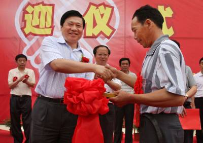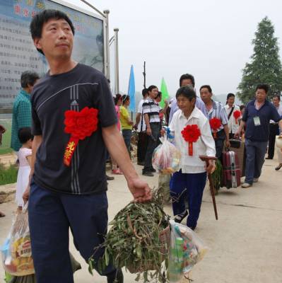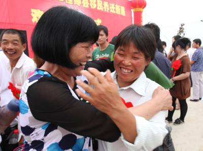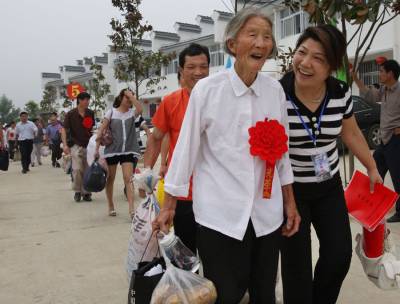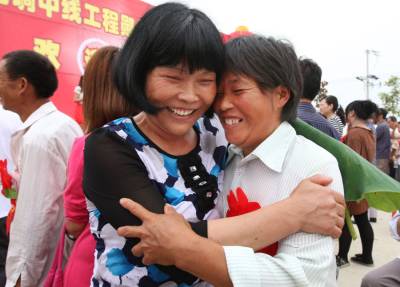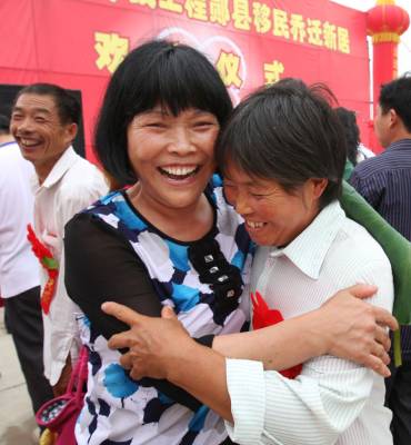 移民新居迎”亲”人本报视界网杨文明摄摄影报道6月19日,曾都区何店镇王店村移民安置点锣鼓喧天,鞭炮声声、喜气洋洋。迎来了来自南水北调中线工程十堰市丹江口库区郧县柳陂镇辽瓦村25户107名迁入我市的新居民。当地村民欢呼雀跃,迎来新主人而高兴;市镇干群、部队官兵纷纷上前热情迎接,搀扶老人,帮提行李,搬运家具,迅速帮新居民乔迁新居,其乐融融美好场景等等。 一栋栋漂亮别致的移民新居,依山傍水,环境优美。一条条通村达户的水泥大道,一个个切实可行的发家致富项目……这些镜头都向人们展示着王店村和谐移民”壮锦图”,迁得来、住得稳、富得快——这一目标将逐步在王店村移民安置点变为现实。一场”迎亲人回家”喜庆和谐画面令人忘怀;当日记者用镜头记录这里”小康移民、科学移民、生态移民、和谐移民”全过程。据了解,本次南水北调中线工程中,十堰市丹江口库区需搬迁安置移民约18万人,其中迁至随州524户2112人,整个搬迁工作将在8月底结束,剩余移民将全部安置在随县14个移民点。 图一、汉十高速何店出口,从郧县驶来的大巴车,车身上挂着”曾都,你好,我来了!”的横幅格外醒目。图二、身戴大红花的郧县柳坡镇辽瓦村107位移民接连下车,高兴来到新家。热情的工作人员马上迎来,他们上前搀扶老人,帮助提行李。图三、我市90余部队官兵头顶烈日,热情为新随州人搬运家具。图四、市委书记王祥喜向王店村安置移民户代表沈召清移交新居钥匙。图五、刚到新家的新居民沈先学正在收拾柴禾,他高兴地说”政府提供的柴米油盐酱醋一应俱图六、老乡见老乡,两眼泪汪汪。”老姐妹,欢迎你!”1968年修建丹江口水库的移民陈寿容(左)看到陈士莲(右)老乡来了,感动得两个人热情拥抱。图七、放眼望去,25幢新房整齐划一小洋楼,白墙黛瓦,映入眼帘。图八、夹道欢迎小主人,据了解,这些新居民最大年龄90岁,最小年龄1岁半。图九、新居民刘兴洪陪着岳父、岳母及妻子、女儿在舒适的新家看上电视。图十、,新居民杨文清和家人正在乔迁新居挂灯笼、贴对联,代表着众多移民的喜悦之情。...图十一、 移民新村网络电视、沼气池、节能灶、路灯等配套设施建设齐全。