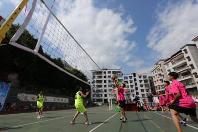 2016年7月22日,湖北省恩施土家族苗族自治州宣恩县、建始县排球代表队在比赛中。 当日,作为湖北省恩施土家族苗族自治州青少年“体育赛事夏令营”比赛项目之一的排球比赛在宣恩县举行。 今年暑期,湖北省恩施土家族苗族自治州文体、教育等部门联合开展包括球类、田径、游泳等多个比赛项目、历时近3个月的赛事“夏令营”,吸引近万名青少年参与各项体育赛事,在运动中度过暑期。 (视界网:张子家摄)