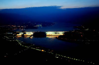 截至7月22日上午8时28分,三峡大坝旅游景区游客年接待总量达到100万人。三峡大坝旅游景区自2014年9月25日实行对国内游客免收门票政策以来,游客接待量明显增多。今年6月份以来,该景区又对坛子岭、196至250平台步行台阶等景点进行了提档升级,同时进一步提升了服务水平,因此赢得了游客们的赞誉。图为7月22日拍摄的三峡大坝夜景。