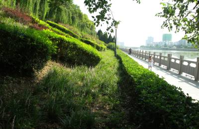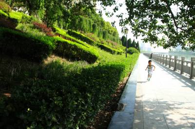 7月23日,-位小朋友在房县城区西河防洪工程人行道上嬉戏。房县城区河流堤岸长55公里,是鄂西北最大的县级防洪工程,但防洪标准只有5年一遇。近年来,房县全面加固除险河堤,确保城区20万人口生命财产,沿河18万亩良田安全度汛。目前,完成投入6亿多元,加固除险河堤43公里,建设河流分洪人工湖17座,蓄水800万立方米,防洪标准提高到50一遇,工程年均实现综合减灾效益达1.2亿元。