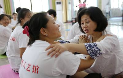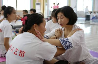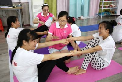 7月24日,在襄阳市民福社会工作服务中心志愿者的引导下,36名聋哑人、6名盲人学习瑜伽,感受瑜伽带来的健康和快乐。当天,襄阳市民福社会工作服务中心“走进瑜伽 热爱生命”聋哑盲群体瑜伽课堂正式开课,主办方希望持续两个月的瑜伽义务培训能让更多的聋哑人、盲人朋友通过练习瑜伽收获健康、感受快乐,激发聋哑人、盲人群体对体育健身热情。