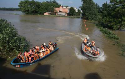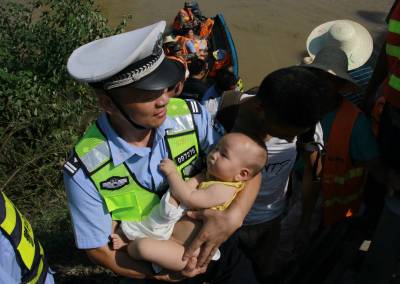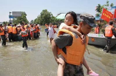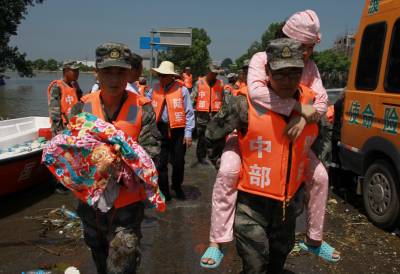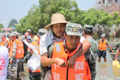 6月18日至7月20日累计平均雨量730.5毫米,其中天门国家基本站621.3毫米,占全年平均降水量(1131毫米)的55%。造成天门河、皂市河、汉北河、天北长渠、东河、西河等天门辖区河流堤坝漫溢,淹水乡镇涉及10个,全市共有68万余人受灾,约25万人被困。此次洪水水势平稳,对房屋等建筑物无冲击破坏力。对于水淹较轻的地方且楼房条件较好的暂时退至二楼以上避水,并用冲锋舟送去矿泉水、米、菜、油等基本生活物资和药品。对于受灾相对较重的地方人群紧急实施转移,目前已经投入部队官兵700余名,干部群众10000余名,冲锋舟62艘进行救援,截止24日18时,已转移安置11万余人,设有集中安置点27个,群众生活稳定。(视界网刘银斌摄)