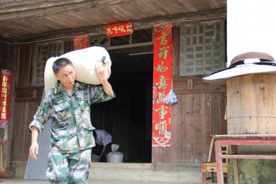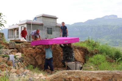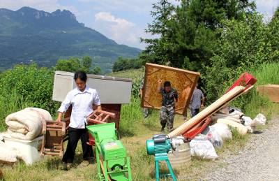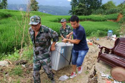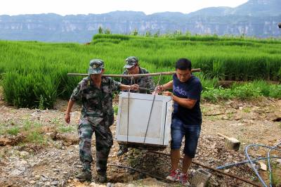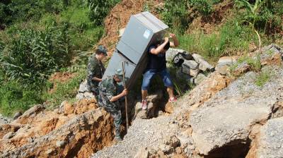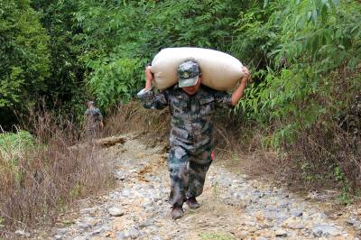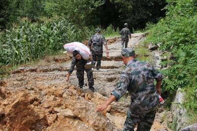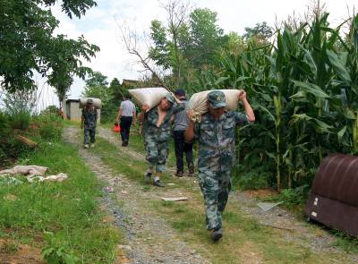 恩施新塘民兵连紧急进入滑坡现场帮灾民转运物资