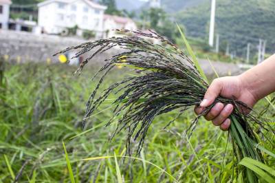 胭脂稻外观形似旱粳子,有芒,属于粳米。胭脂米粒呈椭圆柱形,内外均为暗红色,顺纹有紫红色线。这种稻米因味腴、气香、微红、粒长,煮熟后红如胭脂,“色微红而粒长,气香而味腴”被称作御田胭脂米,民间则称之为红稻米,过去因是皇宫贡米而闻名。 (视界网 杨韬 陈先瑞 摄)
