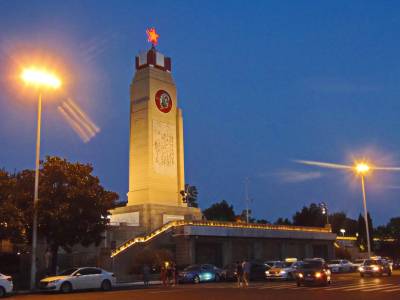 > 汉口江滩防洪纪念碑夜色美不胜收