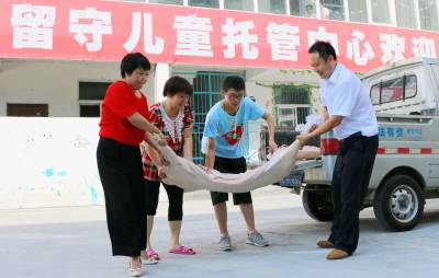 7月25日,竹山县麻家渡镇党委政府干部再次为该镇天英留守儿童托管中心送去100余公斤“爱心猪肉”。据悉,宝丰、麻家渡、秦古、大庙等7个乡镇民政办定期为本乡镇已建成的天英留守儿童托管中心送去“爱心猪肉”,以帮助改善留守儿童的生活。为加强对留守儿童的管理服务,该县积极创办“留守儿童托管中心”、“留守儿童爱心学校”,全县已初步形成以亲属为主体的家庭监护网络、以教职工为主体的学校帮护网络、以基层党政组织为主体的基层管护网络、以“爱心妈妈”为主体的社会呵护网络、使留守儿童关爱保护网络覆盖到家、监护到人、关爱到心。