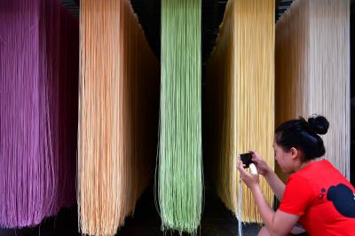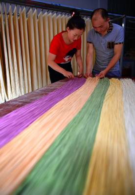 将蔬菜洗净、去皮、榨汁后,按照适当比例加入面粉中,就能生产出不同颜色、带有不同蔬菜味的面条。一年多时间里,他们通过互联网和实体店相结合的方式销售,逐步打开销售市场。“现在最大的困惑,就是人们对‘色素’的恐惧”,肖辉说:“我们用不同颜色的蔬菜作为添加物进行生产,相信我们的诚信加工和经营,能免让越来越多的人信任、喜欢上我们的‘七彩蔬菜面’”。(视界网 宋文摄)