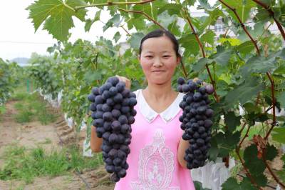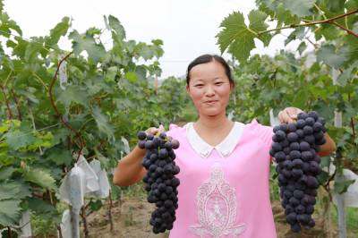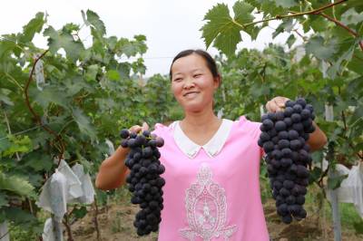 7月27日, 竹山县宝丰镇上坝村六组29岁的返乡农村妇女陈敏正在喜摘葡萄。陈敏在外务工前年返乡,在当地喻家塔村流转土地50亩,种植兴花王、户太八号等优质葡萄,带动10余户贫困户精准脱贫,成为名副其实的农村致富带头人。近年来,该镇计生、人社、农业等部门联合为返乡农家女家门口创业就业搭建平台,开展种植、养殖、电子商务等形式多样的技能培训,培植千余名返乡农家女成为家门口创业的农村“巾帼”致富能手、精准扶贫产业大户。