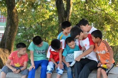 2016年7月22日,湖北经济学院萤火虫学社队员陈继树利用晨读时间辅导孝昌县险峰中学留守孩子学习。今年暑假,萤火虫学社赴孝昌小分队一行22人,来到险峰中学开展为期15天的义务支教活动。作为湖北省大中专学生志愿者暑期“三下乡”社会实践活动优秀团队,该学社在险峰中学建立“萤火虫学社公益服务站”,通过大学生和中小学生牵手、高校公益社团和孝昌县义工联合会共建等形式,积极开展大学生社调和支教,举办公益讲座和参与抗洪救灾等公益活动,建立大学生公益社团服务地方长效机制,关爱山区留守儿童。