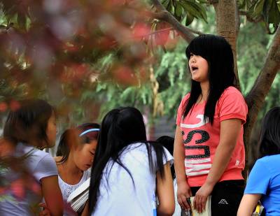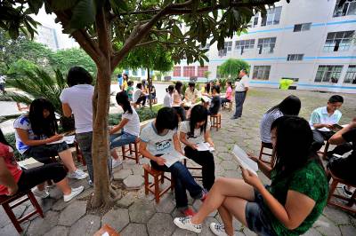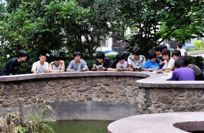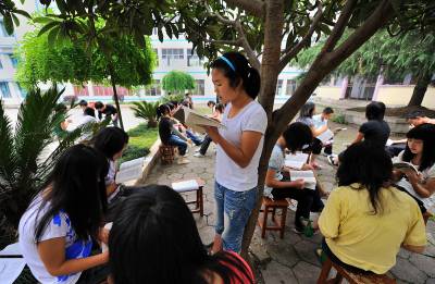 22日,宣恩县中等职业技术学校的学生们在校园的树荫下上语文课。据当堂课的语文老师介绍:把学生的课堂从教室搬到树荫下学校已坚持了两年,这不仅可以放松学生的情绪,同时学生的学习效率也得到有效提高。而该校校长就说:用这种方法给学校上课必须克服来自两方面的压力,一方面学校老师的思想面临转变,并且要有与之配套的教学方案;另一方面,需要做通部分家长的工作,让他们从传统授课方式的思维里走出来并接受”阳光教室”。(视界网签约摄影师:宋文摄)