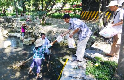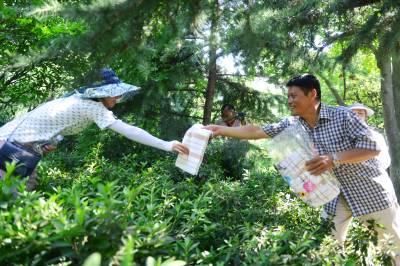 7月28日,市园林管理局人民公园管理处为正在一线劳作的工人送去毛巾、矿泉水和藿香正气液等防暑降温物品,确保作业人员的身体健康。 视界网 谢勇 毛敏 摄
