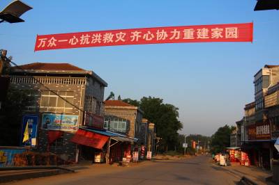 强降雨袭击受灾严重 挂横幅齐心协力重建家园