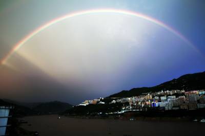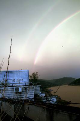 风雨过后现彩虹 29日下午7时20分左右,在官渡口一座高楼上拍摄到横跨长江的彩虹。持续一周多的高温天气,天公不忍人们高温煎熬,从下午6时30分左右下起了一场雨。风雨刚过,一条彩虹便出现在长江巫峡西边。街边随处可见人们纷纷举着手机拍下这美丽的画面。彩虹内外两层一虹一霓,远远望去,仿佛跨越了天际。彩虹持续时间20多分钟,似乎故意给人们留出了充足的拍照时间。(视界网穆世祝摄)巴东县官渡口镇中心学校(444309)