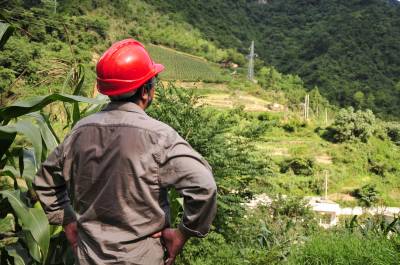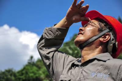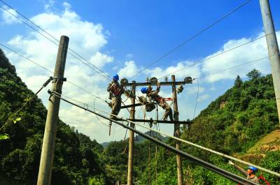 7月26日,骄阳似火,国网湖北省竹溪县供电公司党员先锋队员冒着酷暑在十八里长峡国家级自然保护区辖区内最边远的双坪村,紧张有序地进行安装横担、架线、紧线等配电网建设改造工程作业。近年来,该供电公司把精准扶贫工作作为重点工作之一来抓,并积极开展“我是党员我带头”、“党在我心中”等活动,组建党员先锋队,开展电力扶贫工作,对全县各个贫困村加大了农网改造力度,为贫困村的发展生产提供可靠的电力支撑。