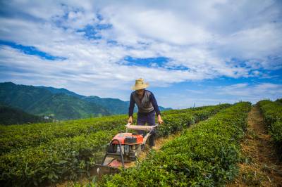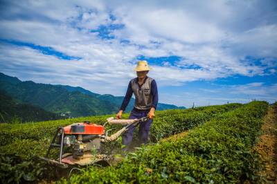 驻村党员茶园除草 7月31日,竹山县扶贫工作队党员龙德柱操作微耕机在该县深河乡双湾村茶园里耕地除草。竹山县充分发挥党员在扶贫开发中的模范带动和党支部的战斗堡垒作用,通过领导干部驻村帮扶、党员引领产业结构调整等一系列措施,为精准扶贫、精准脱贫提供强有力的组织保障。(视界网 章磊 摄)