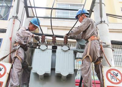 更换烧坏的变压器 7月31日,谷城县供电公司员工正在城关镇邱家楼4号台区更换因高负荷烧坏的变压器。近半个月的桑拿天气,该公司每天都要受理30起左右的故障报修。故障修复率在98%以上,故障到达率100%。视界网马明刚摄