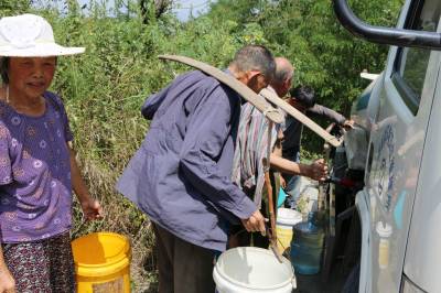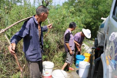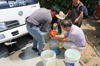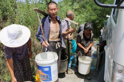 7月31日,竹山县麻家渡镇涧沟梁村村民正排队领取政府送来的饮用水。连日来的持续干旱使麻家渡镇1.4755万亩农作物受灾严重,部分村人畜出现不同程度的饮水困难。日前,该镇加大节水宣传力度、科学调度合理安排用水,已投入25台水泵、5台发电机、应急资金5万余元,抽调87人成立了21个抗旱专班奔赴各村参与指导抗旱救灾工作,将旱灾损失降到最低。