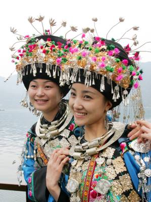 苗族歌手张明霞(左)吴娟郑元昌摄