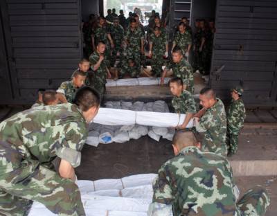 > 武警湖北总队官兵紧急抢运救灾物资