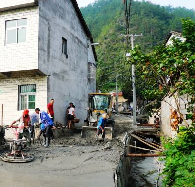 在施工现场,笔者看到,在焦辣辣的太阳下,村民们不惧“秋老虎”的淫威,都在参加铺路行动,机械人力酣战正欢,工程监理、村组干部都在现场出力。以往通到各家各户的土路,都变成了水泥路面,整个村庄都被水泥路面连接在了一起,形成了小康公路网,平坦而又宽敞。