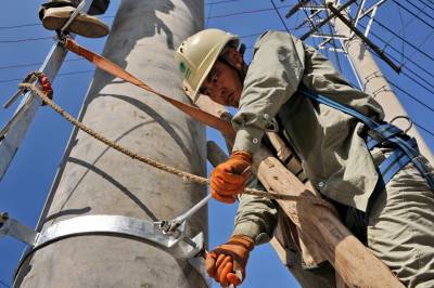 临近中午,无论地面还是电杆上,没有一处阴凉可以躲避,只能顶着火辣辣太阳施工,在电杆上一呆就是4、5个小时,他们个个衣服被汗水湿透,汗水顺着额头直往下淌,只见他们时时抬起胳膊擦去眼角的汗珠后,又不停地忙着手里的活。