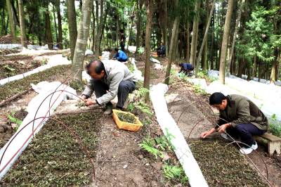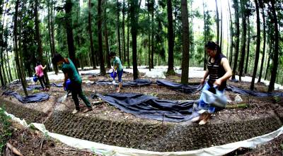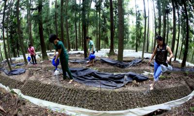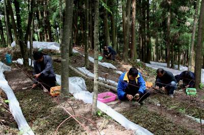 8月16日,工人在竹山县九华山林场金线莲基地管理金线莲。近年来,竹山县大力发展林下经济,招商引进生物科技公司进驻竹山,专门从事金线莲等珍稀药用植物的研发、组培、规模化种植、产品加工及销售。目前该公司在竹山已建立了金线莲组培基地,年组培能力50万瓶,同时还在九华山林场建立了50亩金线莲林下仿生野生种植示范基地,引导周边百姓种植金线莲,起示范指导作用。预计三年内,该公司将流转种植山林3万亩,以“公司﹢基地﹢农户﹢合作社”种植模式扩大种植规模,种植林地面积达3000—5000亩,带动种植农户10000余户。如今金线莲已初具规模,今年第一季度实现产值200余万元。(视界网 程平 摄影)