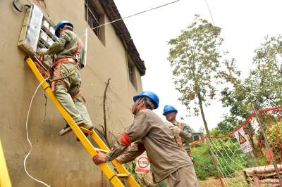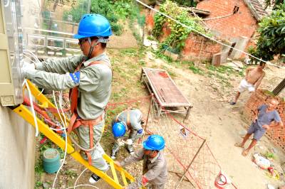 湖北沙洋:塔上“穿针引线” 消除线路隐患