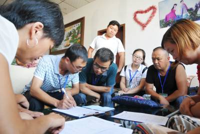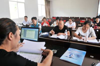 15日,巴东县第三次全国农业普查试点业务培训在溪丘湾乡石碾村举行,普查员、指导员现场入户登记表格。