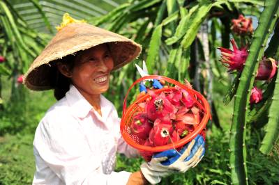 金秋时节,宜昌市夷陵区龙泉镇雷家畈村万华火龙果专业合作社的现代设施农业基地里,一个个红似小灯笼的火龙果星罗棋布地挂满钢架大棚,合作社社员在加紧采收满足市场订单需求的同时,也吸引不少乡村游市民纷纷走进田园,体验采摘小水果带来的乐趣。