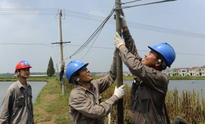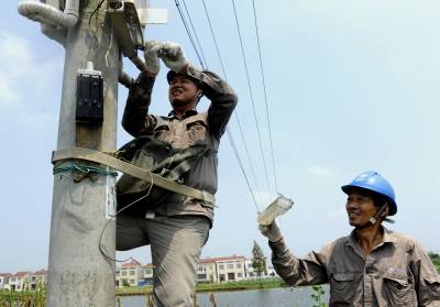 16日,国网潜江市供电公司龙湾供电所配网抢修人员张建军、涂爱国冒着38度高温在龙湾镇陶新村抢修章启彪鱼池上的自架线路。当天中午,陶新村养鱼户章启彪向该所值班室打来电话,反映他家17亩鱼池增氧机突然断电,由于天气炎热,鱼塘急需充氧,否则鱼塘会翻塘死鱼。该所接到故障报修电话后,迅速组织抢修人员对故障点进行排查。经过半小时检查,断电原因找到了,原来是自架线路中间接头接触不良发热引起断路,导致增氧机停电。抢修人员重新对接头进行处理后,鱼池又恢复了正常供电,增氧机又重新运转了起来。田永祥摄