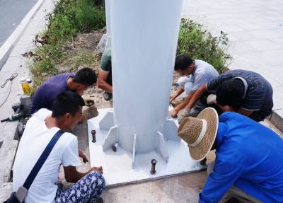 8月17日,安装工人冒着高温正在十堰市郧阳区十堰大道安装带有夜光反射的新路标指示牌。为让过往车辆全天24小时看到路旁路标,打造南水北调中线工程水源区生态亲水旅游,郧阳区设计15平方米新路标指示牌,换掉小块路标指示牌,背面加装建设生态文明标语,使各条道路标牌焕然一新。 视界网 周家山 摄