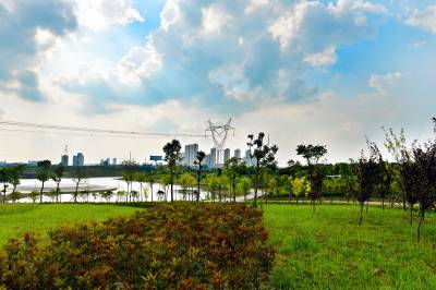 > 湿地公园绿意盎然