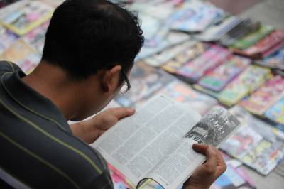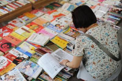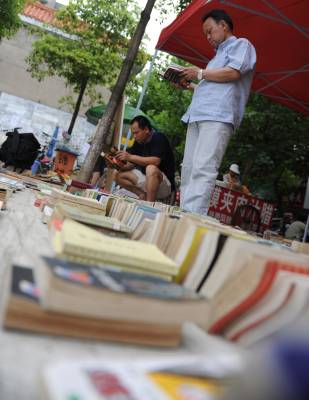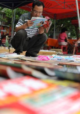 旧书堆里淘”黄金”22日,潜江市民在园林路旧书”超市”选购自己喜爱的旧书,遮阳顶棚内摆满了种类繁多的旧书:民国的、建国初期的、文革的,线装的、竖排的,连环画、期刊、杂志、工具书等应有尽有。爱书人士或收藏家都能在旧书堆里”淘”到自己想要的书……这些旧书一般都是老板走街窜串乡从本市或者周边县市回收”淘”过来的,一般旧书销售价格远比书店或图书馆便宜,但极具收藏价值的旧书比原价要高出几倍甚至几十倍。旧书市场有着比较稳定的消费群体,其火热所带来的不仅仅是经济效益,更体现了市民文化层次的不断提升,社会文化氛围的渐趋浓厚。本报视界网吴燕军摄