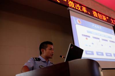 8月19日,在宜昌市公安局 “微改革、微创新”的赛场,缘自民警“金点子”、已在所属公安机关落地见效的20个项目,被相关团队一一上台晾晒,比拚高下。自去年以来,宜昌市公安局针对公安工作中的难点和瓶颈,面向民警和社会征集“金点子”,催生、带动“小成本却有大作为”的微改革、微创新,给全市公安机关提升效能注入全新活力。(视界网吴令剑摄)