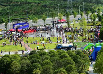 8月20日,南水北调中线工程十堰市郧阳区搬迁后的柳陂新集镇公园热闹非凡,来往游客人山人海,络绎不绝。下午3点,随着音乐的节奏人们开始尽情地互相泼水,祝福的水花到处飞溅。第一届农副产品展销会暨湿身狂欢节开幕。本次湿身狂欢节上还有越野车漂移表演、越野摩托车飞越表演、消夏文艺晚会、帐篷节等。200多生态有机农副摊位让5万多游客大饱眼福和口福。 视界网周家山 摄
