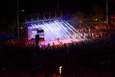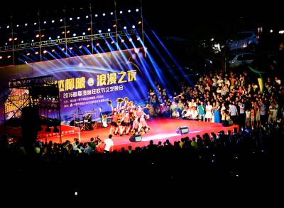 8月20日晚,2万多人在南水北调中线工程十堰市郧阳区柳陂镇新集镇公园里,观看了一场丰富多彩的文艺节目。该晚会主题是"悠然柳陂 浪漫之夜。从各地赶来的文艺工作者为观众演出了轻音乐、独唱、舞蹈、摇滚乐、非物质文化传承剧二棚子及传统节目。 视界网周家山 摄