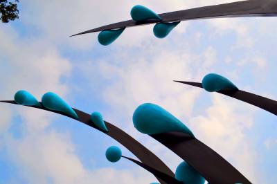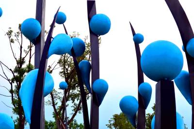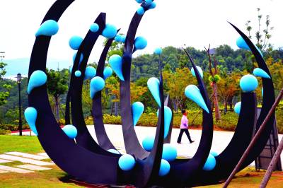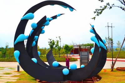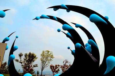 水源区水滨“巨滴水”受青睐 2016年8月22日,南水北调水源区湖北省十堰市郧阳汉江水滨的中华水园一“巨滴水”雕塑格外受青睐,雕塑状如“菊花”,约5人高,巨型“蓝色情调水滴”挂满“花瓣”,独具匠心的创意和精美造型吸引众多游客前往观赏、拍照。 据了解,“巨滴水”雕塑名曰“跨越”,寓意人们对水源地和水资源的保护要一直传承发扬下去,确保“一江清水送北京”。 (供稿:湖北省十堰市郧阳区柳陂镇中心小学 杨显有 18163190517 442532)