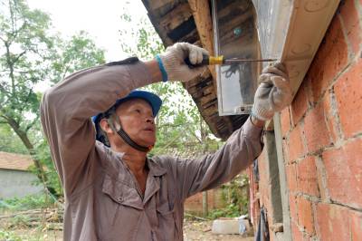 8月23日上午,在老河口市竹林桥镇马湾村3组,来自老河口市供电公司的工作人员正在对村民的电表箱进行检查并加固。当前,随着农村留守家庭的逐渐增多,该公司不断强化线路设备巡视管理,主动上门,为村民义务检修用电设备,确保留守家庭安全用电。