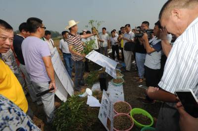 当天上午,湖北省植保总站组织有关专家对宜城市农技推广中心在宜城市王集镇方阁村九组王建成的花生田实施的“芸乐收”花生农药减量增产试验进行现场测产,来自全省各个花生种植区的专家现场参与测产。侧产后,专家一致认定,花生应用芸乐收(亩用25%吡唑醚菌酯15毫升+0.01%芸苔素内酯可溶液剂10毫升+助剂)增产效果显著。