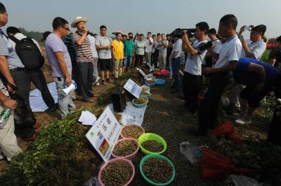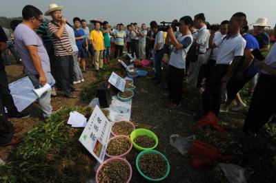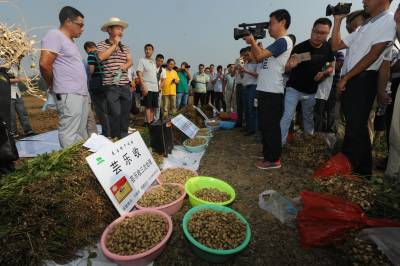 本报讯 (记者 安富斌 通讯员 石磊 聂强)8月24日,在宜城市王集镇,观音村10组正准备下田干活的农民王生辉被大田里测产的场面所吸引,他围过来观看,抓起一把把的花生进行比较,他说:“当时推广这个技术的时候,自己在外干活,没有赶上打药套餐,自己的花生颗粒没有这么大,也比这少多了,同样面积的花生,这里的比我的多了一大疙瘩(袋子),所以,种田要讲科学。”