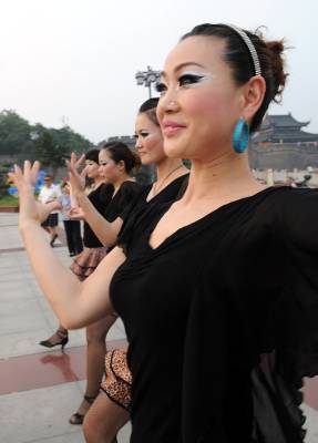 昨日,老人们在御河广场打鼓(图1),中年女子跳拉丁舞(图2),小孩子溜旱冰(图3)。傍晚,荆州市荆州区街头广场热闹非凡,市民们纷纷走出家门,休闲纳凉。据介绍,目前,这个区共有四个街头广场,每晚广场都汇集来自四面八方的市民。他们跳舞、唱歌和玩游戏,自娱自乐享受和谐幸福的生活。(记者杨平摄)
