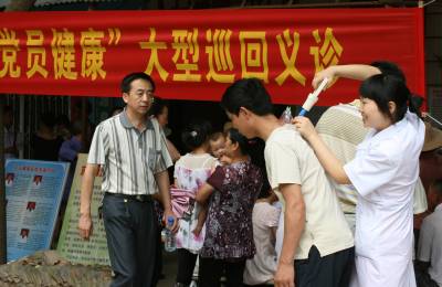 七一将至,京山县康复医院和情订奇缘婚纱影楼的业主来到京山县曹武镇最偏远的源泉村,为该村200多名基层农村党员义诊以及免费拍生活照。他们虽然是个体户,同时也是共产党员,他们为基层党员服务的行为受到农村党员们的热烈欢迎。张文胜摄
