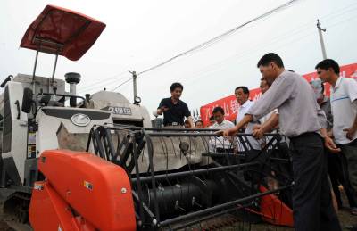 昨日,农机专家正在给农民讲述收割机的操作和保护常识。荆州市荆州区引导农民组织农机专业合作社,合理配置农业机械,减少重复投资,提高农机具使用频率。目前,这个区拥有这样的农机合作社23个,农机具达到6000多台(套),预计今年年底将超过1万台(套),进一步解放农村劳动力,提高农业机械化作业程度,并彻底取代耕牛。(记者杨平摄)