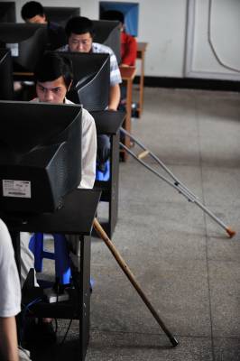 视界网签约摄影师沈祥辉沈鸿俊通讯员舒建国6月23日,恩施州残疾人计算机应用培训班考试在在州残疾人培训就业基地——来凤县致信电子职业学校举行(图一)。来自全州各县市19名残疾人顺利通过全国统一考试,拿到结业证,为他们就业拿到了一张通行证(图二)。拄着拐杖参加考试也只有在这样特殊的考场(图三),患有脑瘫的田敏用两根手指敲打键盘通过了考试(图四),而从来没上过学唐启斌硬是从ABC开始学习,早上五点钟起床被单词学拼音,用一种叫锲而不舍的毅力掌握了简单的文本处理知识(图五)。手记: 为了进一步增强残疾人职业技能,使残疾人掌握一技之长,有效地提高残疾人就业能力。州残联、州劳动保障部门结合恩施州实际,并受用工企业委托,开办了这期计算机应用培训班,以拓宽全州残疾人就业渠道。本次培训主要学习计算机应用技能,学员学杂费费用全免。学员结业后由学校集中送到白象集团和深圳多家饮食企业的计算机控制、收银员岗位就业。一方面我们看到党委、政府及各部门积极为残疾人创造就业的机会,提供就业的方便,另一方面我们也为这些身残志不残的勇者叫好,他们用坚韧的意志书写着自己的人生,他们没有抱怨,他们懂得感恩。再过两天,这些学员就踏上了南下的征程,在这里真诚祝福他们,一切都好。