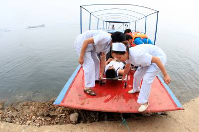 安全实战练兵水上搜救演习成功荆楚网消息(通讯员丁家国)6月24日,丹江口水库附近水域成功举行了水上搜救演习,南水北调中线丹江口水库南沟综合码头附近水域,一艘游船模拟与一艘货船发生碰撞,引发重大安全”事故”。随即,海事、交通、环保、渔政、卫生等部门联手展开救助,这是丹江口水库一场迄今最大规模的水上安全实战练兵活动。这次演习主要包括人命救助、游客转运及船舶救援、船舶消防、污染物处置等四个课目。演习突出实战特点,严格按照水上突发事件应急预案演练。通过实战演习,增强船员的水上消防、救生意识,提高船员操作技能,检验多部门联动、水运企业间的应急协调和救助能力,锻炼了救助队伍。