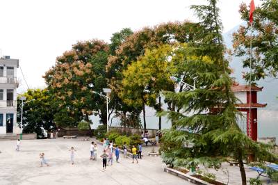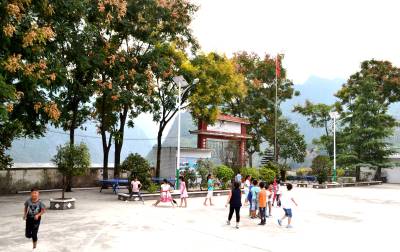 秋色满校园 19日,拍摄到巴东县官渡口镇东坡小学一角。 时值秋分时节,长江巫峡口岸的东坡小学秋色正浓。红褐色、米黄色的灯笼树花争相开放,微风中,红旗招展,孩子们下在树下自由玩耍,做着各自喜爱的课外活动,一副峡江秋色图让人美不胜收。(视界网向国大摄)巴东县官渡口镇东坡小学