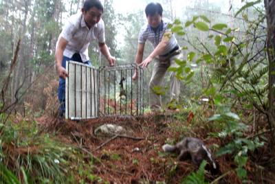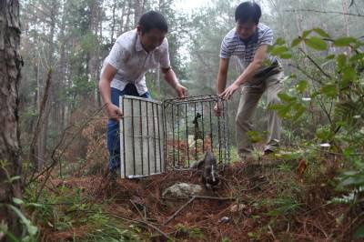9月19日,湖北省竹山县竹根联盟盟友从该县县城路过从一村民手中买回“花面狸”(果子狸)放归大自然,受到人们称赞。
