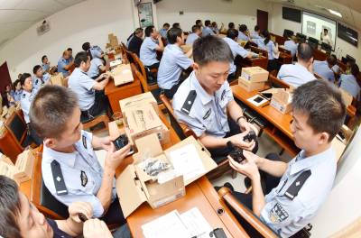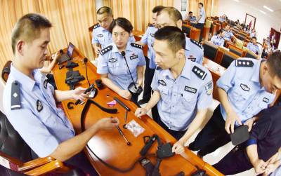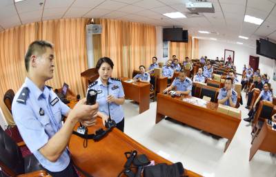 培训现场,技术人员通过PPT讲解和现场演示,对新配备的执法记录仪的构件组成、功能作用、佩戴要求、维护保养等进行了详细讲解;单警装备教官对伸缩警棍、催泪喷射器、手铐、催泪强光手电等新式公安单警装备的操作方法、使用技巧、适用范围、注意事项等进行了讲解和现场示范;来自基层一线执法单位的民警就疑难问题,现场与技术人员和教官进行了互动交流和解答。